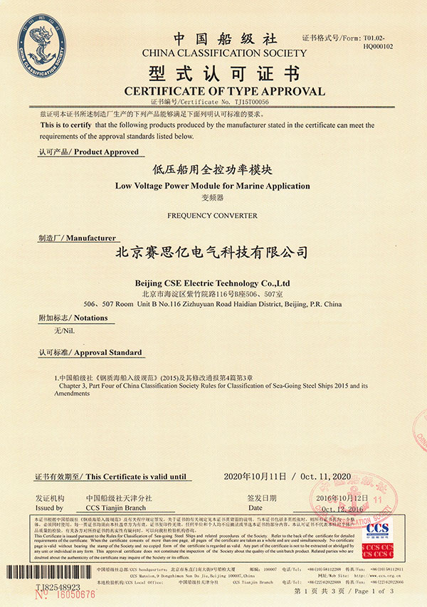 本項目的AFE型電力推進系統(tǒng)采用了賽思億公司自主研發(fā)的船舶電力推進用變頻器,并采用自主研發(fā)并具有CCS型式認可的核心變頻模塊,打破了船舶變頻器尤其是船舶變頻模塊長時間由國外廠家壟斷的局面。