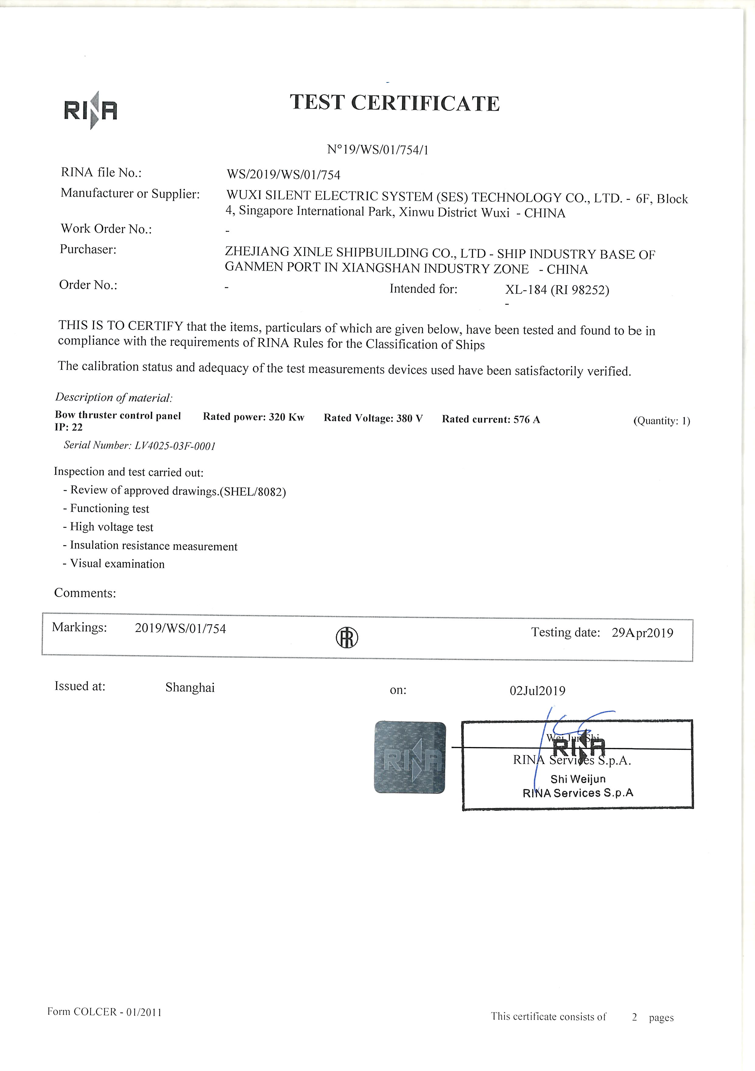 2020年04月10日上午,由浙江新樂造船股份有限公司為瑞士Nova Marine Carriers公司建造,裝備了賽思億艏側(cè)推國產(chǎn)推進(jìn)變頻電控設(shè)備和艏側(cè)推電機(jī)的6000噸雜貨船1號(hào)船“野?!陛嗠x開公司碼頭前往寧波北侖大榭交船,該船舶的側(cè)推進(jìn)系統(tǒng)由無錫瑞風(fēng)船用推進(jìn)器有限公司集成。