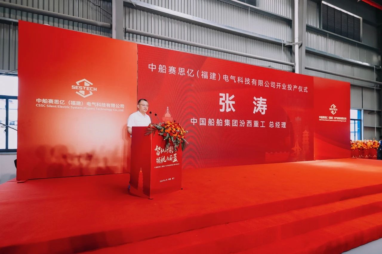 連江縣人民政府副縣長(zhǎng)張記歡發(fā)表講話,他表示,中船賽思億(福建)電氣科技有限公司的落地投產(chǎn),是對(duì)連江發(fā)展新能源船舶產(chǎn)業(yè)的一次重要推動(dòng),是連江加快形成新質(zhì)生產(chǎn)力的一個(gè)縮影,并表達(dá)了對(duì)福建賽思億能夠在連江扎根、成長(zhǎng),并在未來(lái)取得更加輝煌成就的期待。