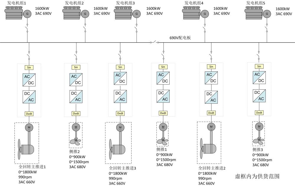賽思億為1200T海上風(fēng)電安裝船提供的電力推進(jìn)系統(tǒng)主要包括:3臺(tái)艏側(cè)推變頻器、3臺(tái)艉推進(jìn)變頻器、3臺(tái)艏側(cè)推電機(jī)和3臺(tái)艉側(cè)推電機(jī)、舵槳和遙控等。 賽思億核心變頻器具有CCS、RINA、BV三大船級(jí)社型式認(rèn)證,已廣泛應(yīng)用于直流組網(wǎng)電力推進(jìn)、交流組網(wǎng)電力推進(jìn)、軸帶混合動(dòng)力和岸電變頻電源等場景中,該風(fēng)電施工平臺(tái)是國產(chǎn)變頻在海上風(fēng)電領(lǐng)域的再次應(yīng)用。